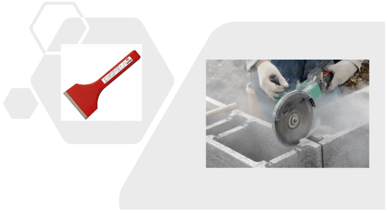 右:フラットチゼル(別名カットチゼル)左:ディスクグラインダー(またはジスクグラインダー)