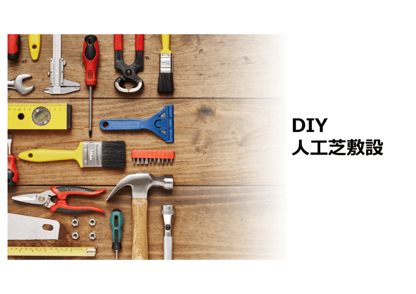- 人工芝を広げ、サイズを調整します。
