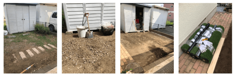 - 雑草や石を取り除いて地面を平らにします。