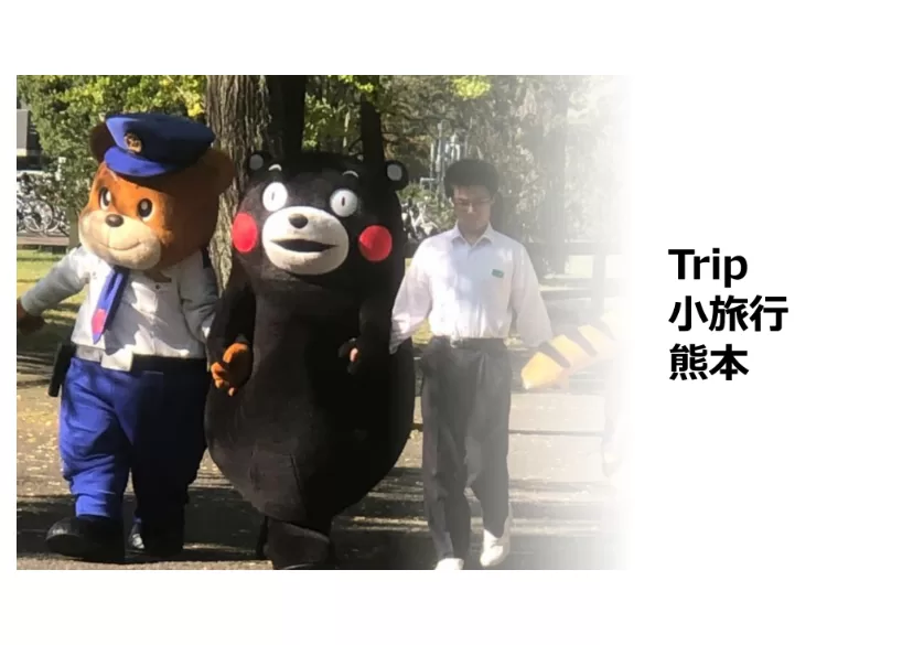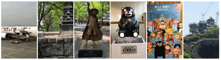 まずは、熊本県庁へ。県庁入口沿道には熊本出身の漫画家尾田栄一郎さんが手がけた『ワンピース』の象徴的な主人公ルフィーの銅像が建てられていました。堂々としたその姿はファンならずとも心に残るもの。そして、県庁建物入口には熊本の顔とも言える「くまモン」の置物が佇んでいました。くまモンは熊本サプライズキャラクターとして多くの人に愛されている存在で、その独特なデザインがまた和みます。