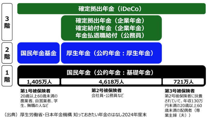 - 概要: 基礎年金や厚生年金が含まれており、政府が管理しています。